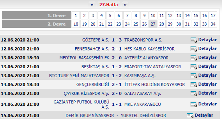 Super Lig Puan Durumu 12 Haziran 2020 Super Lig 27 Hafta Fiksturu Mac Sonuclari Ve Puan Durumu