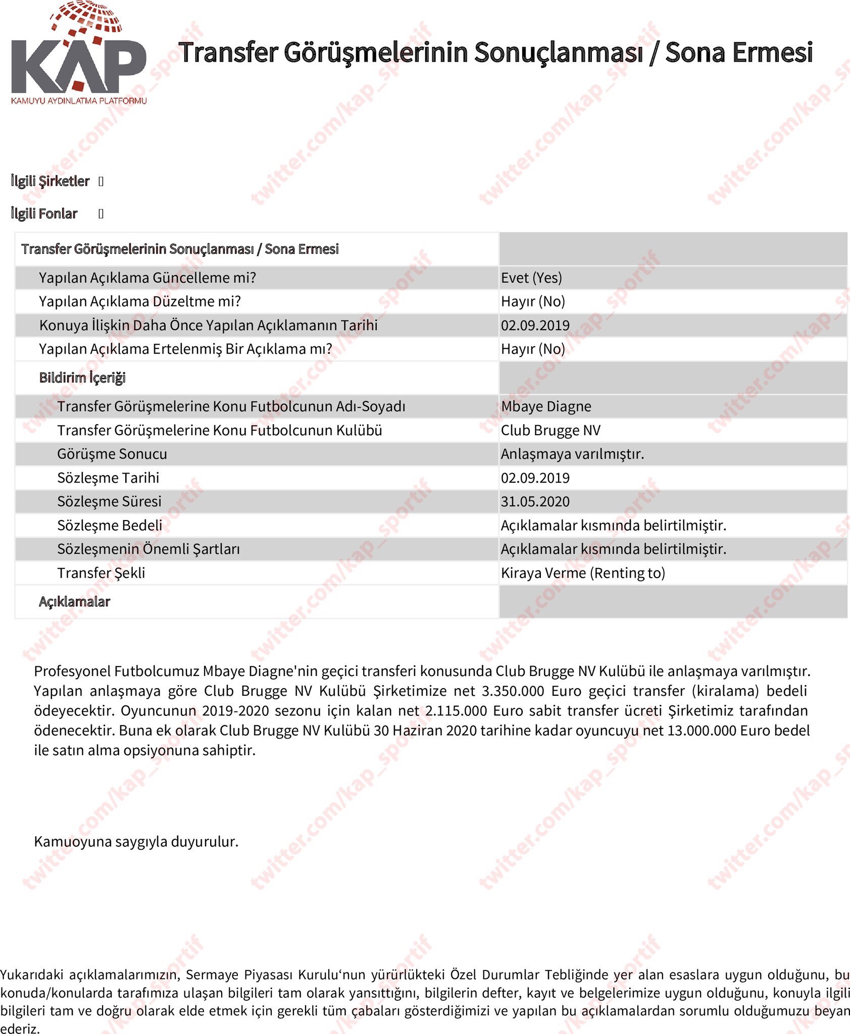 Turkish Football En Twitter Club Brugge Will Pay Galatasaray A 3 35m Loan Fee For Mbaye Diagne Galatasaray Will Pay Diagne S 2 115m Salary This Season Brugge Will Have A 13m Buy Clause Option