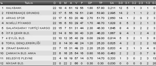 Galatasaray Erkek Voleybol Puan Durumu