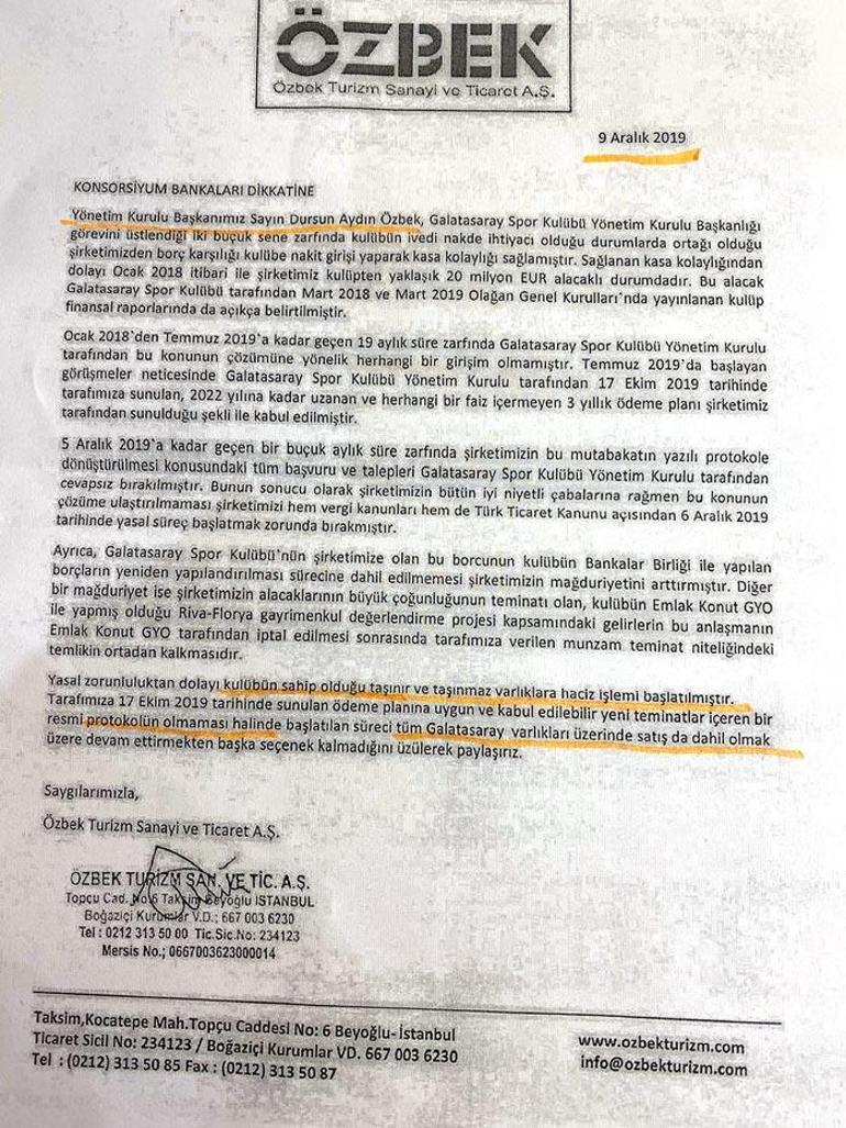 Galatasaray haciz. özbek in iş ortağı salih çelen sarı kırmızılı kulübe haciz mektubu gönderdi. Galatasaray ın üstünde çok ağır yüklerin olduğunu vurgulayan cengiz kendisiyle görüşmeler yapıyoruz. Ben burada olmasam bile bu konular sürecek. Galatasaray da 2 yıl 8 ay başkanlık yaptığı süre boyunca harcadığı 8 milyon lirayı geri isteyen dursun özbek galatasaray adası için haciz başlattı.