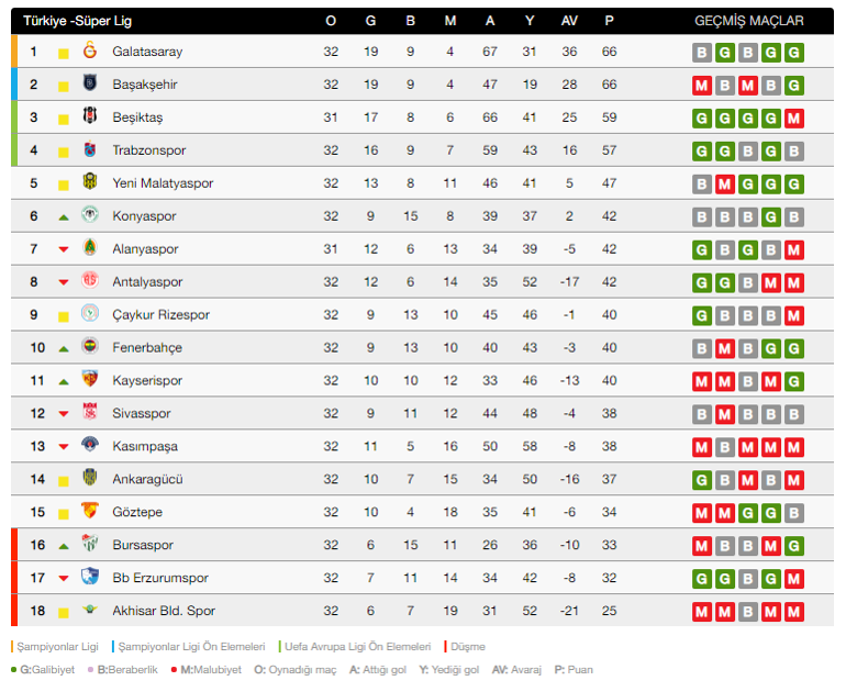Super Lig Puan Durumunda Galatasaray Kacinci Sirada Galatasaray In Puani Basaksehir Kac Puanda Besiktas In Puani Kac Fenerbahce Nin Puani Kac Besiktas Fenerbahce Puan Farki Kac Besiktas Galatasaray Puan Farki Kac