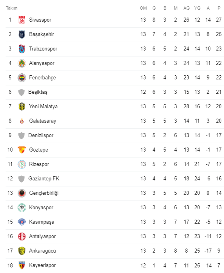 Super Lig 13 Hafta Puan Durumu Nasil Sekillendi Super Lig Puan Durumu