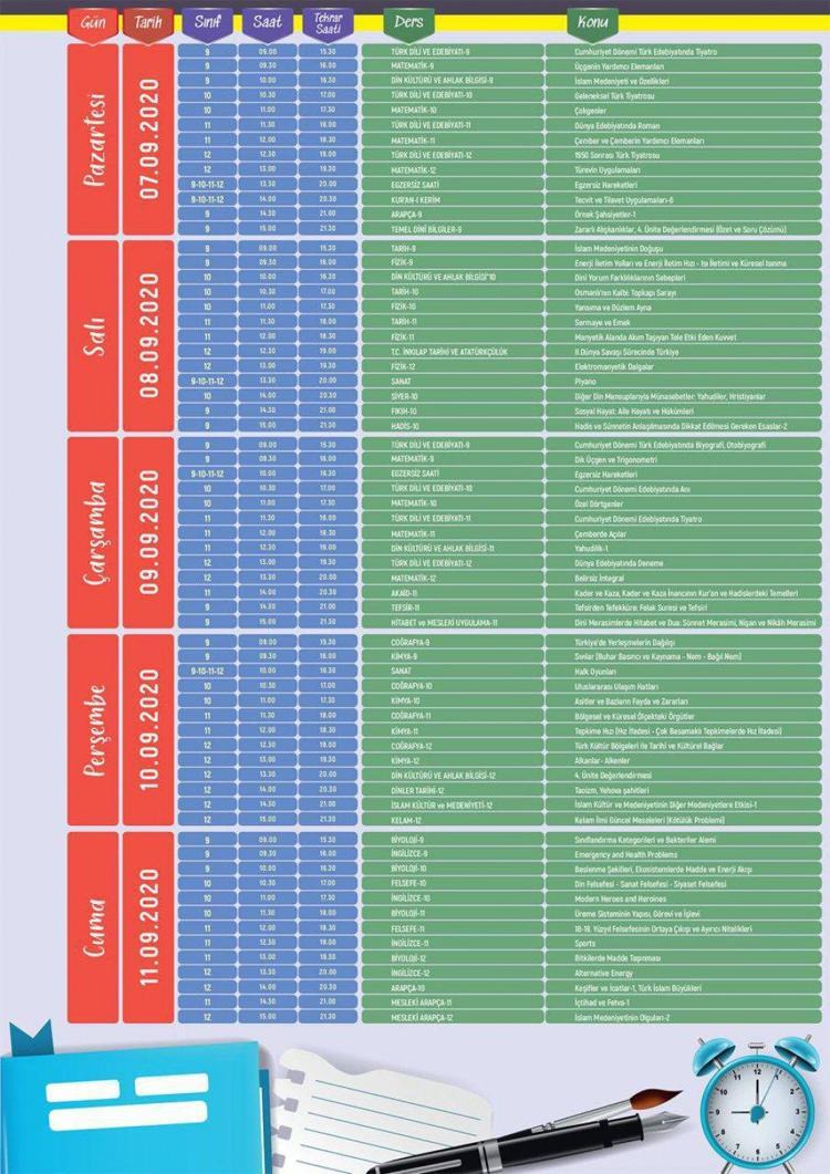 21 25 Eylul Eba Tv Ders Programi Eba Ilkokul Ortaokul Lise Ders Programi Takvim