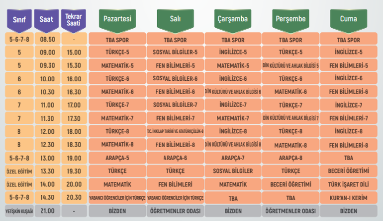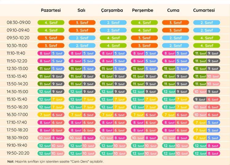 Eba Ders Programi Ortaokul Haftalik Ders Programi Meb Tablosu Internet Haber
