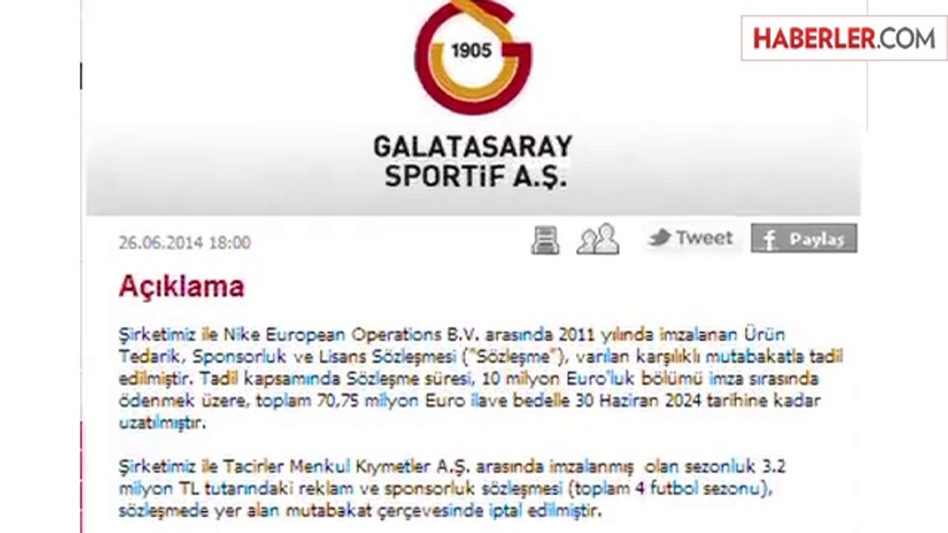 Sarı kırmızılıların teknik direktör fatih terim in istediği seri gibi bir orta saha değil. Yıllık 4 6 milyon euro linkte yer alan detaya göre gsray ın nike ile olan forma anlaşması 2011 2012 döneminde başlamış ve 5 yıllık 23 1 milyon euro bu rakam yıllık 4 62 mn euroya ya da 6 35 milyon dolara denk geliyor. şirketimiz ile nike european operations netherlands b v i̇stanbul şubesi arasında tüm futbol takımlarımızı içeren ve 2011 2012 futbol sezonundan başlamak üzere 5 futbol sezonu için geçerli olacak sponsorluk anlaşması imzalanmıştır. 5 sezon sürecek olan anlaşmadır.