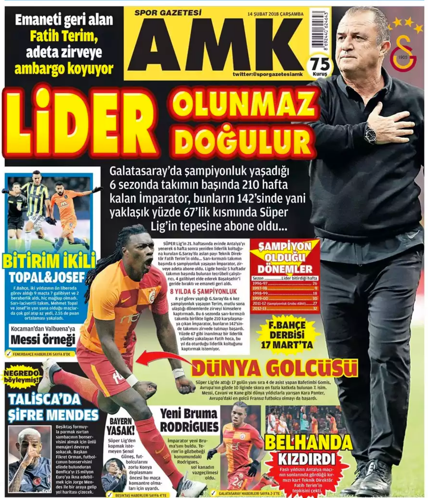 Galatasaray Ve Futbol Dunyasi World Of Soccer Gazete Mansetleri Galatasaray Haberleri 15 Subat 2018